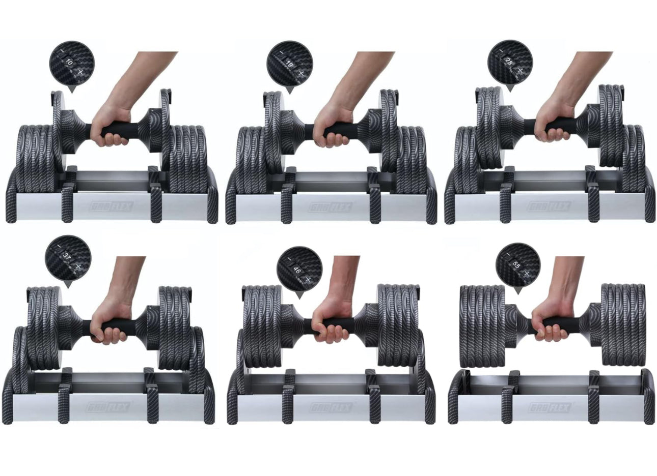 GR8FLEX 1 Second Adjustable Dumbbells (Pair) 55 lb each